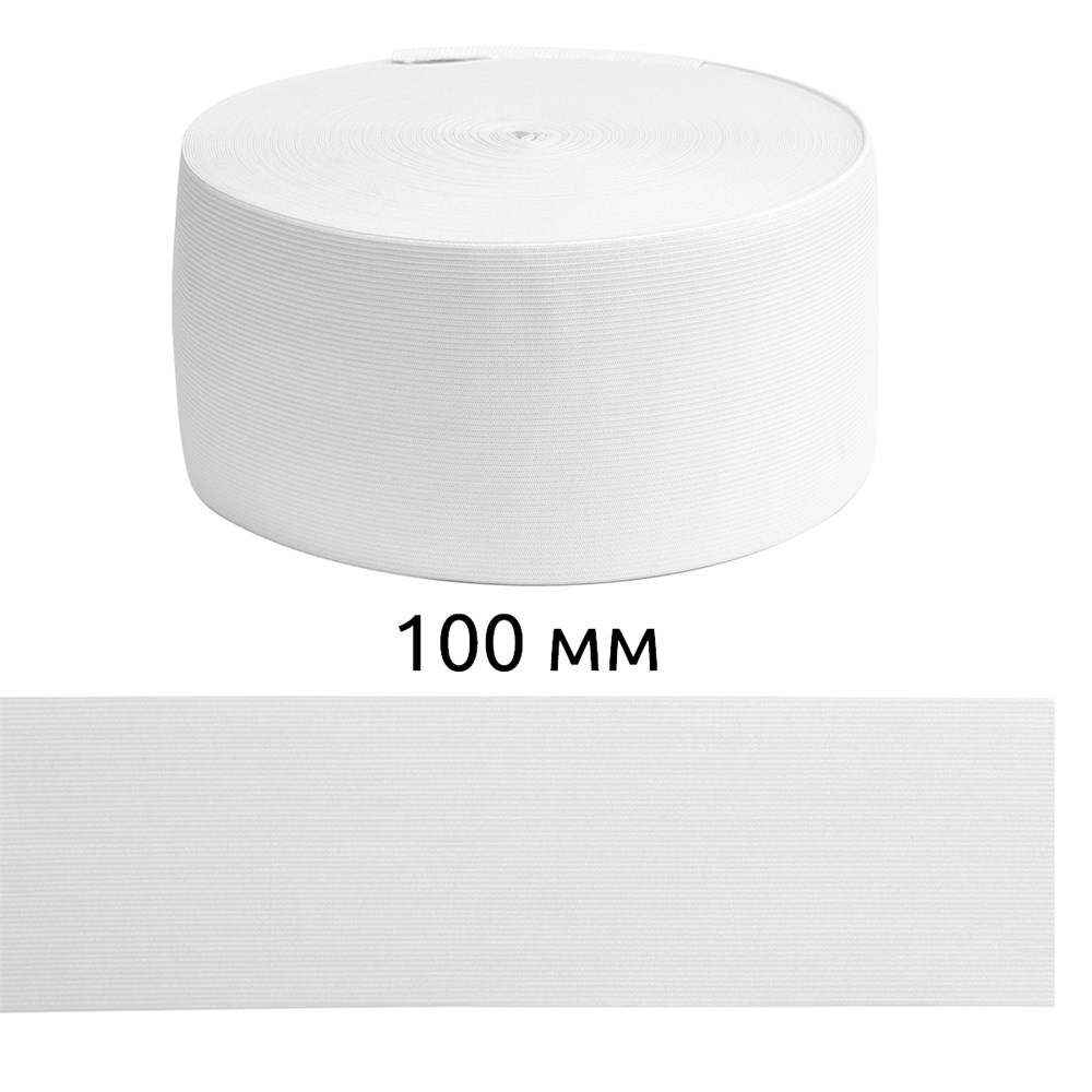 Резинка вязаная шир.100мм Стандарт 3,9 гр цв.Белый рул.40 м (короб.48 рул - 1 920 метров)