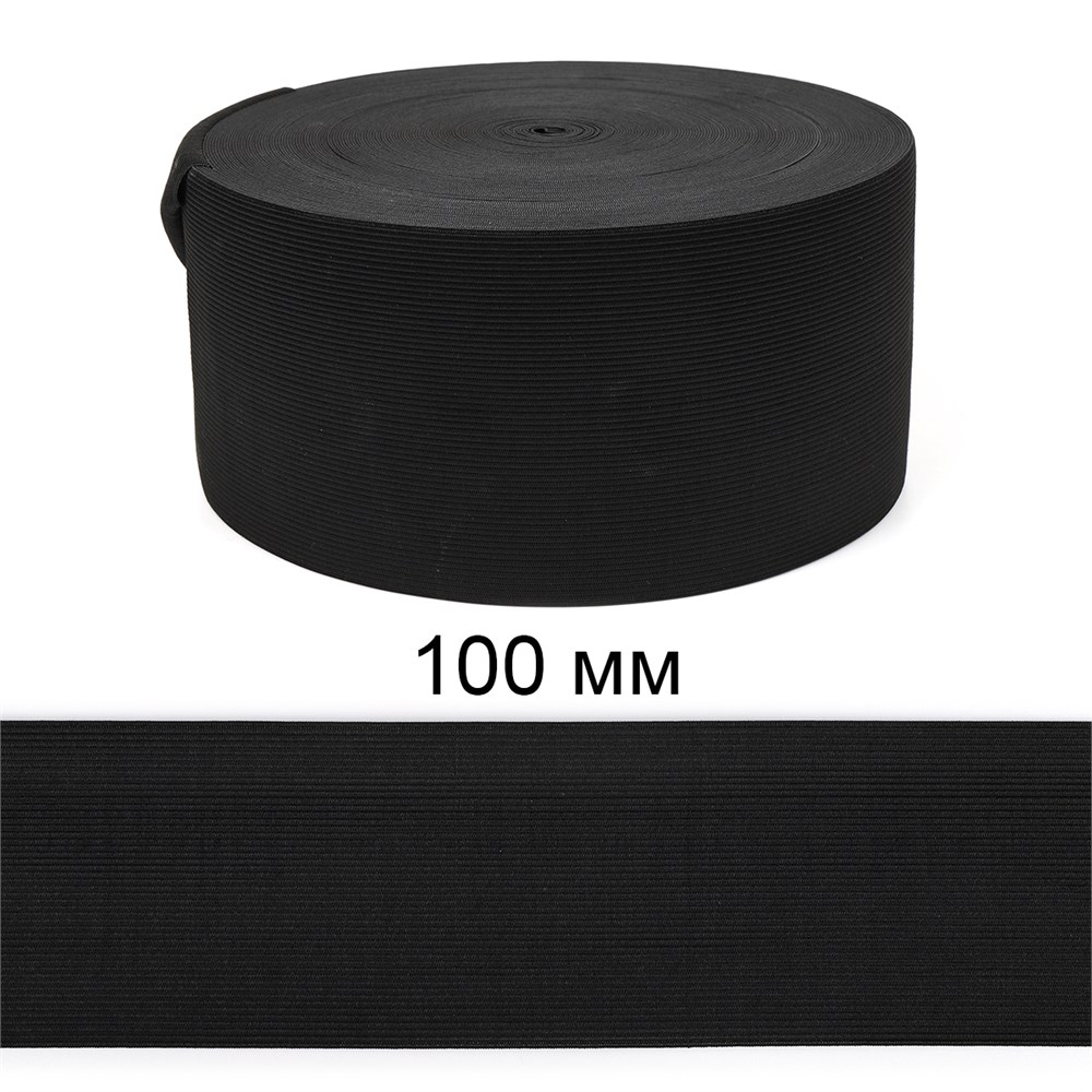 Резинка вязаная шир.100мм Стандарт 3,9 гр цв.Чёрный рул.40 м (короб.48 рул - 1 920 метров)