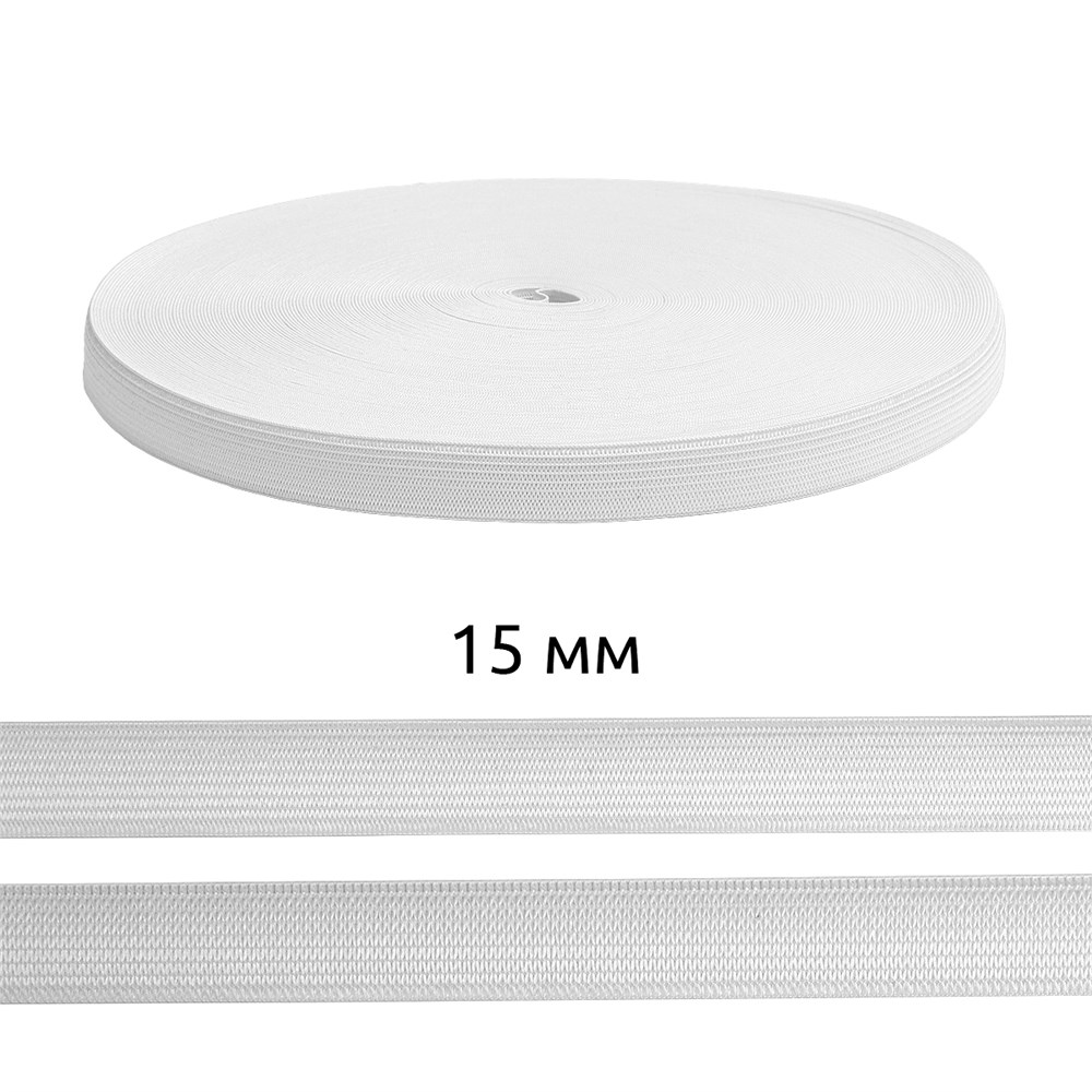 Резинка вязаная шир.15мм Стандарт 3,9 гр цв.Белый рул.40 м (короб.80 рул - 3 200 метров)