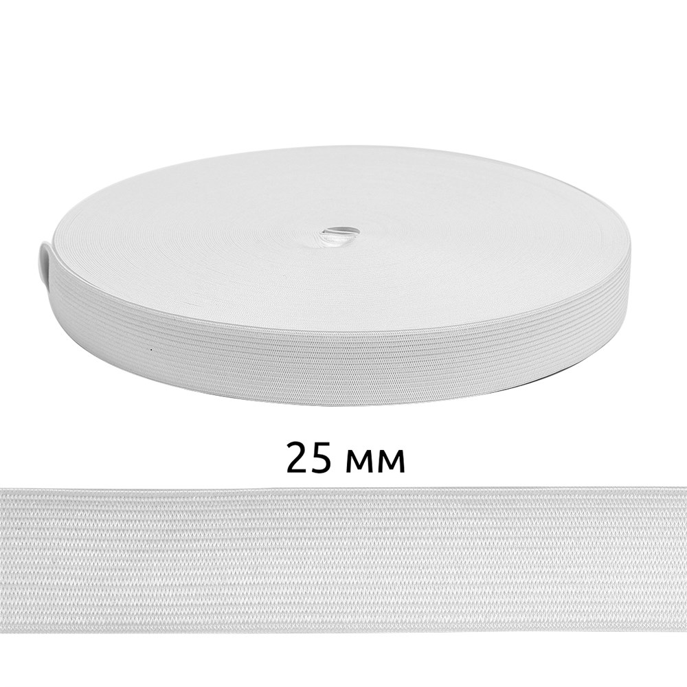 Резинка вязаная шир.25мм Стандарт 3,9 гр цв.Белый рул.40 м (короб.48 рул - 1 920 метров)
