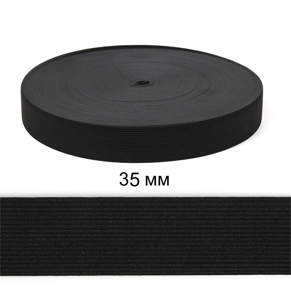 Резинка вязаная шир.35мм Стандарт 3,9 гр цв.Чёрный рул.40 м (короб.48 рул - 1 920 метров)