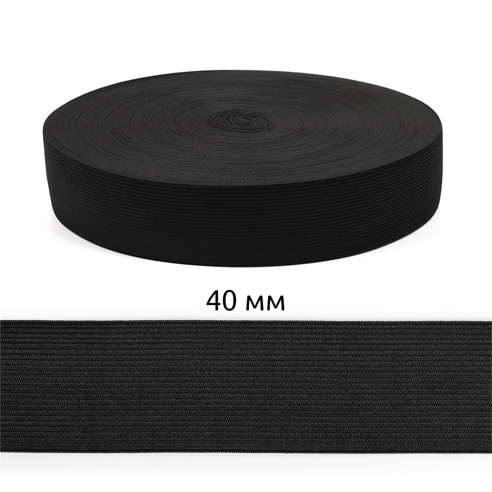 Резинка вязаная шир.40мм Стандарт 3,9 гр цв.Чёрный рул.40 м (короб.48 рул - 1 920 метров)