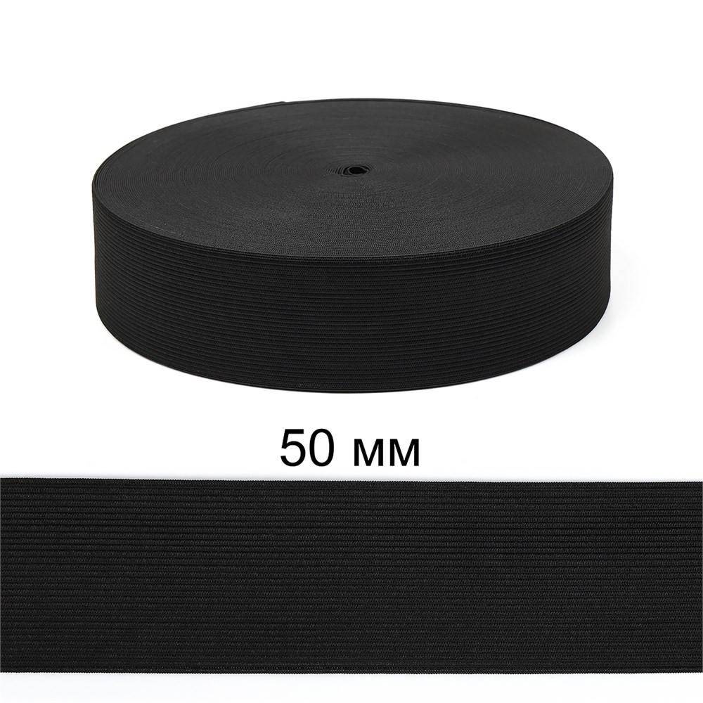 Резинка вязаная шир.50мм Стандарт 3,9 гр цв.Чёрный рул.40 м (короб.48 рул - 1 920 метров)