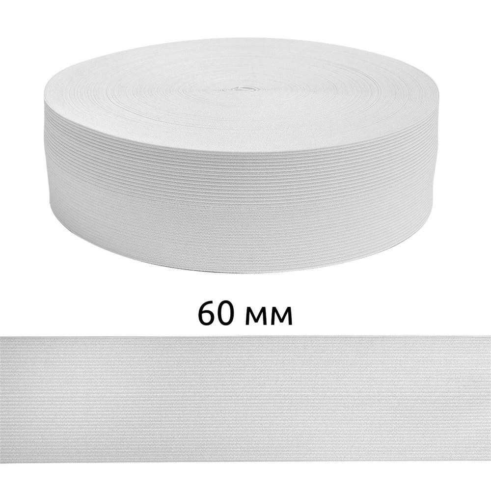 Резинка вязаная шир.60мм Стандарт 3,9 гр цв.Белый рул.40 м (короб.48 рул - 1 920 метров)